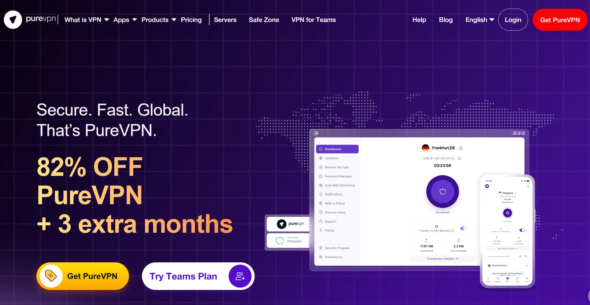 Rýchle zhrnutie: PureVPN je jedna z najdlhšie pôsobiacich VPN služieb na trhu s viac ako 6 500 servermi v 78+ krajinách. Ponúka silné šifrovanie, overenú politiku bez logovania a veľmi nízku cenu pri dlhodobých predplatných – ideálna voľba pre používateľov, ktorí hľadajú spoľahlivú VPN za rozumné peniaze.