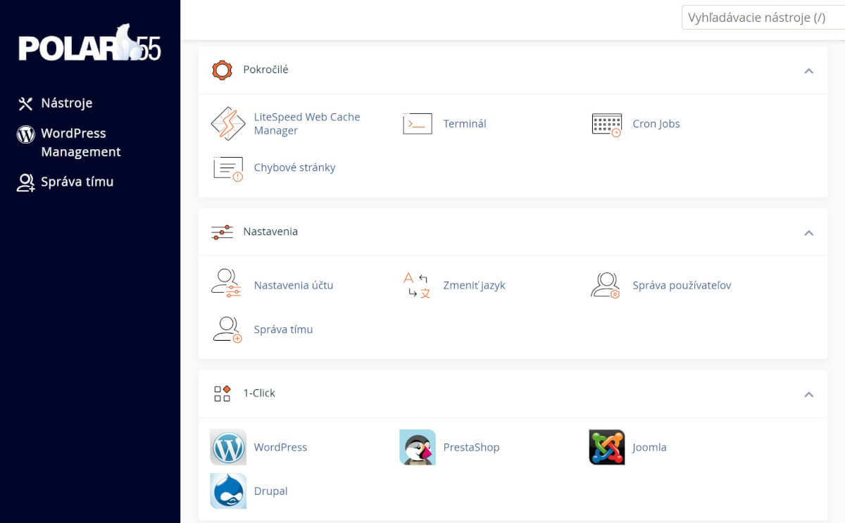 Polar55 je hosting, ktorý kladie dôraz na jednoduchosť – jedno riešenie, bez zbytočného výberu balíkov plných obmedzení. Pre začiatočníka je prívetivý vďaka inštalácii WordPressu jedným klikom a slovensky hovoriacej podpore. Pre pokročilejšieho používateľa zasa oceníte staging prostredie, WordPress Manager v cPanel a LiteSpeed technológiu, ktorá zabezpečuje rýchle načítanie webu.